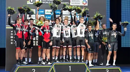 El conjunto liderado por Tom Dumoulin se impuso en el recorrido por Bergen al BMC y al Sky de Chris Froome y sumó su primer título mundial de contrarreloj por equipos.