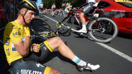 El, hasta entonces, maillot amarillo, se vio involucrado en la caída en el tramo final de la sexta etapa y, como consecuencia, se fracturó la clavícula y obligó, no sólo a abandonar la ronda gala, sino a ceder el liderato a Froome.