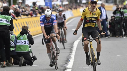 El neerlandés sorprendió en la parte final del Poggio a Ganna, Van Aert y Pogacar, segundo, tercero y cuarto en meta, y se llevó el primer monumento de la temporada.