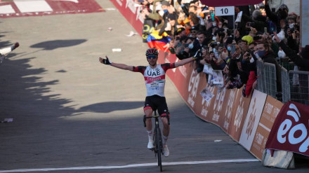 Triplete del UAE Team en el Trofeo Laigueglia con victoria para Polanc por delante de sus compañeros Ayuso y Covi. Otro español, el joven Carlos Rodríguez, acabó quinto la prueba.