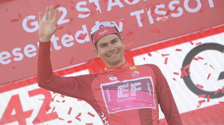 El estadounidense de solo 19 años fue el más fuerte en la llegada a Otura y se impuso en meta a Simon Clarke y Stan Dewulf. El italiano Covi se mantiene como líder de la prueba.