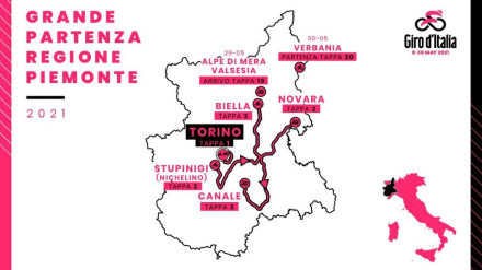 Las tres primeras etapas de la carrera se disputarán en la región del Piamonte. El Giro empezará el 8 de mayo con un prólogo de 9 kilómetros por las calles de Turín.