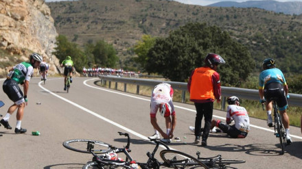 Primoz Roglic sigue siendo líder en una jornada marcada por una masiva caída. Cubero, Doull y Mezgec, los más afectados por ese accidente.