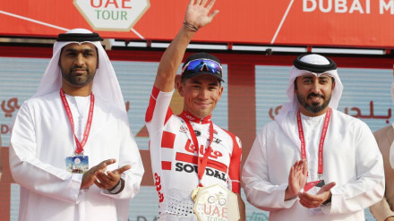 El ciclista murciano venció al sprint en la etapa reina del Tour de los Emiratos Árabes Unidos por delante de Roglic y Gaudeu.