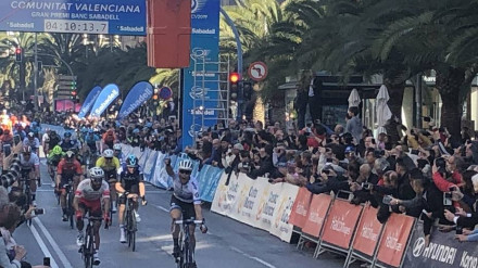 El ciclista británico se impuso a Valverde en la meta de Alcossebre. Ion Izaguirre, tercero en meta es el virtual ganador de la carrera.