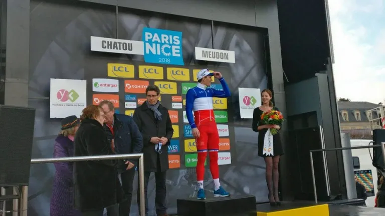 El sprinter galo de la FDJ se impuso este domingo en la primera etapa de la París Niza con final en Meudon en una igualadísima llegada, que tuvo que resolverse con photo finish, al español Gorka Izaguirre.