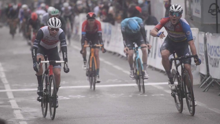 Un duelo bajo la lluvia entre los ciclistas transalpinos al que se unió como tercer clasificado el español Alex Aranburu, del Astana, equipo que peleó por la victoria, pero sin suerte, ya que el ruso Vlasov cayó junto a Alaphlippe a 1.000 metros de meta.