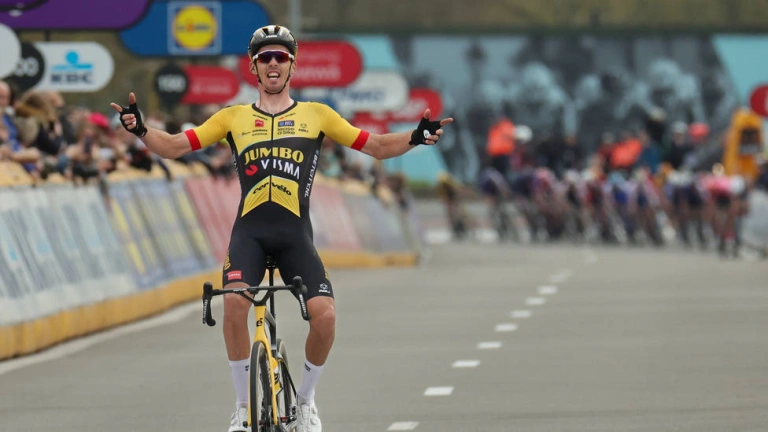 Una paliza tremenda con premio meritorio. Pasó la raya a 15 segundos de Laporte, y delante del estadounidense Neilson Powless (EF Education). Una carrera ensayo para el Tour de Flandes del proximo domingo, donde volverán a medirse los grandes monstruos del pelotón, como Pogacar, Van der Poel y Van Aert. En el examen de 11 cotas y 8 tramos adoquinados hubo batalla todo el día, y emoción hasta el final.
