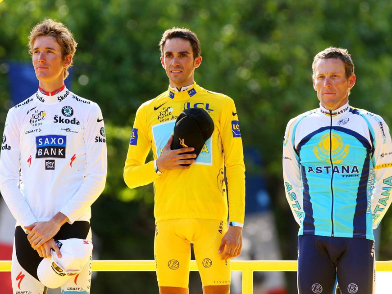Andy Schleck ( LUX / Saxobank ) / Alberto Contador ( ESP) Astana ) / Lance Armstrong ( USA / Astana ) PUBLICATIONxNOTxINxFRAxITA