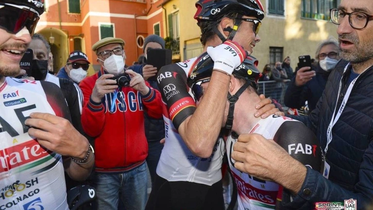 En una impresionante y coordinada labor de equipo, el UAE arrasó en Laigueglia con 3 de los hombres que metió en la escapada buena del día, la definitiva, donde estaban la mayor parte de los favoritos, en la zona de las cotas donde hubo batalla sin cuartel en los últimos 50 km,