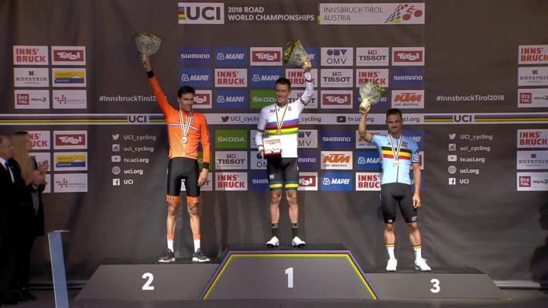 El australiano Rohan Dennis arrolló este miércoles en la crono individual del Mundial de Innsbruck y arrebató con una impresionante exhibición el maillot arcoíris al holandés Tom Dumoulin, quien aguantó a duras penas para hacerse con la plata por delante del belga Victor Campenaerts.