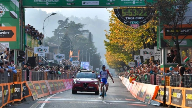 Pinot atraviesa la línea de meta en la clásica Il Lombardía (@Il_Lombardia)