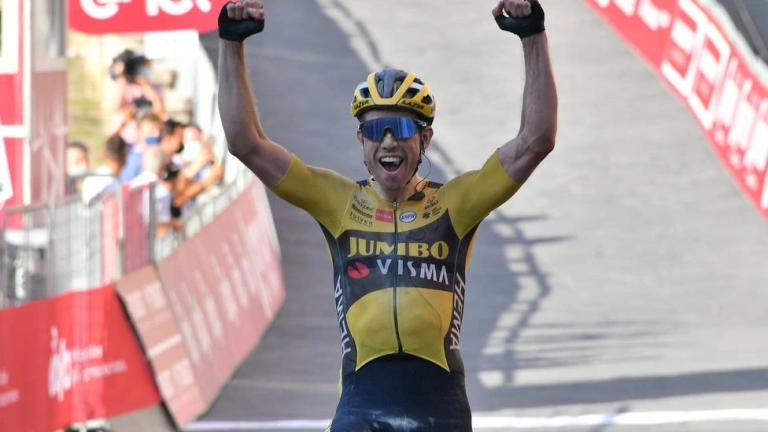Tras acabar tercero en las últimas dos ediciones, Van Aert eligió el momento correcto para atacar, en el sector de Le Tolfe, a menos de quince kilómetros para el final, y cruzó la línea de meta en solitario para sellar su primer triunfo en la clásica italiana