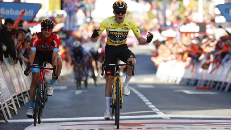 El ciclista del Jumbo-Visma gana en la llegada a Santurce para seguir líder de la carrera, en una jornada con más de 3.000 metros de desnivel positivo. Landa dio guerra.