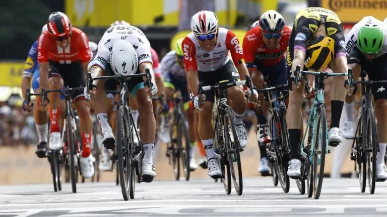 Una nueva caída en el último kilómetro cortó el grupo, y el esprint se disputó entre el eslovaco Peter Sagan (Bora-Hansgrohe) y la gran revelación de la temporada, el neerlandés Mike Teunissen (Jumbo-Visma), que en un último golpe de riñón se adjudicó la primera etapa de su vida en el Tour.
