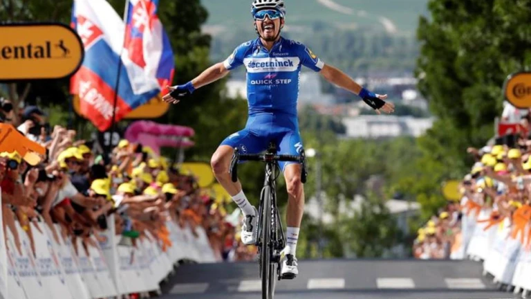 Épernay, la capital del champán, entre viñedos y célebres bodegas, fue el escenario este lunes de una portentosa exhibición del francés Julian Alaphilippe (Deceuninck Quick Step), quien sorprendió con un ataque en los últimos 16 kilómetros que le permitió ganar la tercera etapa y enfundarse el maillot amarillo.