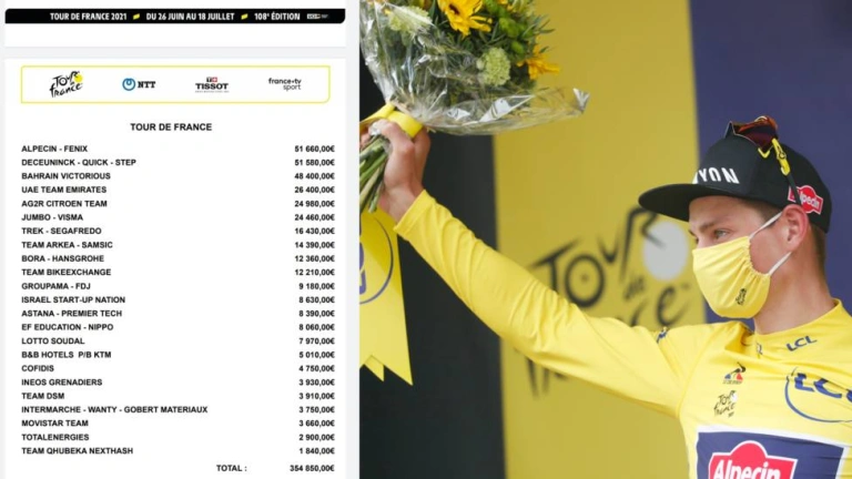 Cumplido el primer tercio del Tour de Francia este lunes se llegaba al día de descanso en el que los equipos aprovechan para hacer balance de sus resultados de la semana inicial y a replantear sus estrategias para el resto de la prueba. Tras nueve etapas disputadas la escuadra que más dinero ha percibido es el Alpecin-Fenix que de nueve etapas se ha llevado dos gracias a Merlier y a Van der Poel, quien ha llevado el maillot amarillo seis días.
