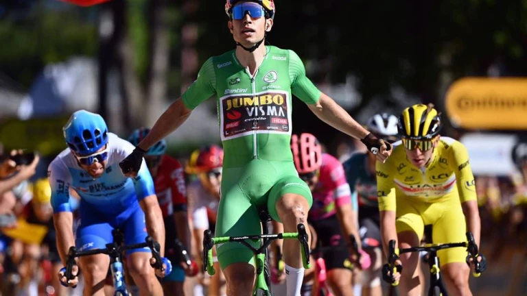 Van Aert (Herentals, 27 años) culminó un buen trabajo de su equipo durante todo el día, especialmente al final, en los repechos brutales previos a meta, donde irrumpió para lograr su octava victoria en el Tour de Francia, la séptima de la temporada y la número 37 de su carrera profesional. Marcó en meta un tiempo de 4h.13.07, en otra jornada rápida que se cerró a 44,2 km/hora.
