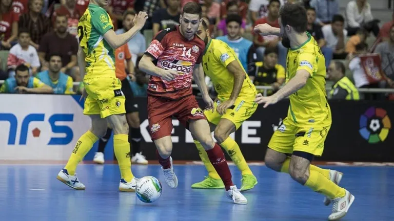 ElPozo Murcia, liderado por Miguelín y apoyado en el portero Fede, ha dado primero en semifinales de la Liga en la Primera división de fútbol sala al ganar, por 4-2, al Jaén Paraíso Interior en la prórroga, que fue necesaria en un partido intenso y muy disputado, lo que deja al equipo grana a un solo triunfo de clasificarse para la final.