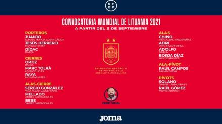 El seleccionador nacional de fútbol da a conocer su convocatori para el Mundial de Lituanina, entre el 12 de septiembre y el 3 de octubre. Cecilio y Eric Pérez, descartados.