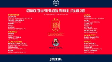 Fede Vidal hace oficial la convocatoria para la preparación del Mundial de Lituania de fútbol sala