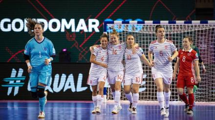 La selección española de fútbol sala femenina ganó por 0-5 a Rusia y se enfrentará a Portugal, que derrotó 5-1 a Ucrania en la otra semifinal.