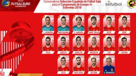 El seleccionador español de fútbol sala ha facilitado una lista con quince hombres, uno más de los 14 oficialmente convocados para el Europeo de Eslovenia 2018, ya que incluye a Carlos Barrón, portero del Palma, para participar en los entrenamientos y ante una posible contingencia. La normativa de la UEFA permite la sustitución de un portero lesionado durante el torneo. Barrón viajará con la selección y participará en los entrenamientos.