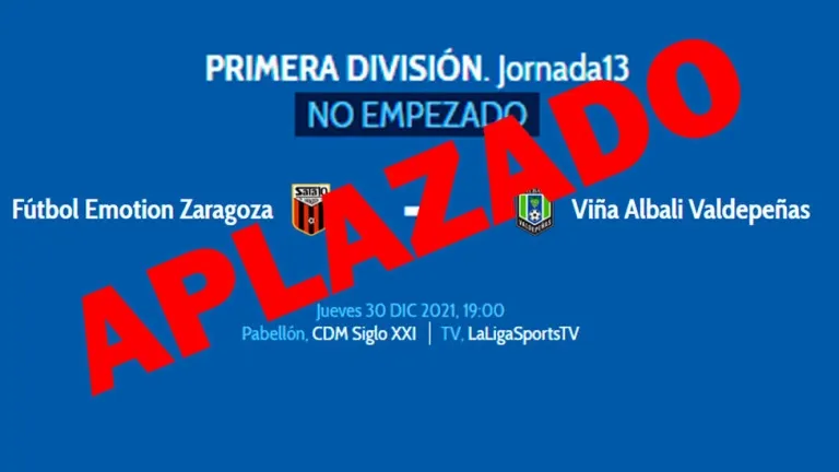 En la 13ª jornada en la Primera División de la LNFS, solo podrá jugarse un partido, después de que, este miércoles, la RFEF haya decidido aplazar el partido previsto este jueves entre Futbol Emotion Zaragoza y Viña Albali Valdepeñas.