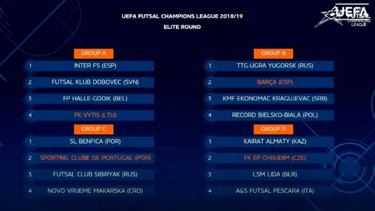 Así quedó el sorteo de la Ronda Elite de la Champions de fútbol sala (@UEFAFutsal)