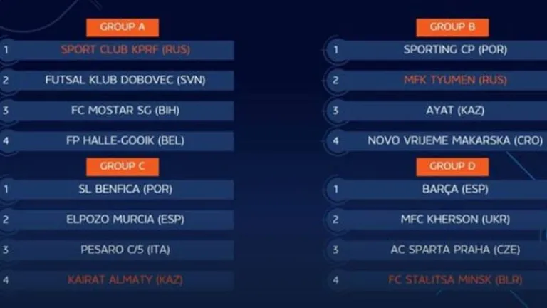 GRUPO B (Sede en Tyumen, en Rusia): Sporting CP (POR), Tyumen (RUS), Ayat (KAZ) y Novo Vrijeme (CRO).