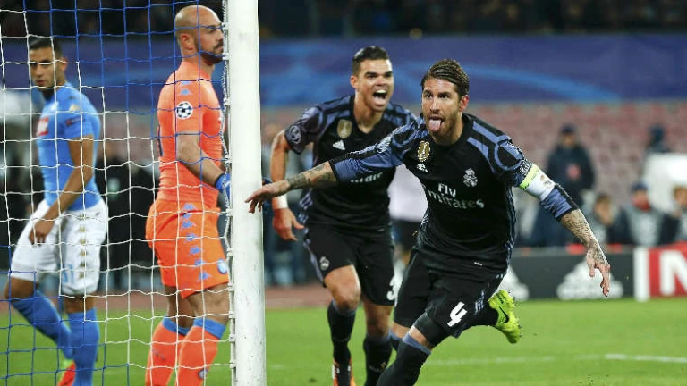 Gol de Sergio Ramos (Nápoles, 1 - Real Madrid, 1)