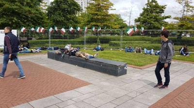 15 - Aficionados de la Juventus tirados en el suelo en la previa de la final