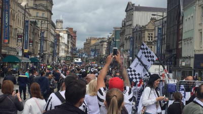 38. Los fans del Real Madrid ven el final del partido desde fuera del estadio