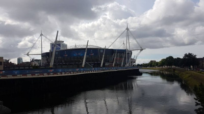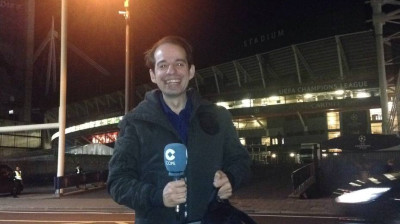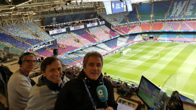 10 - Paco González y Manolo Lama, en el estadio de Cardiff