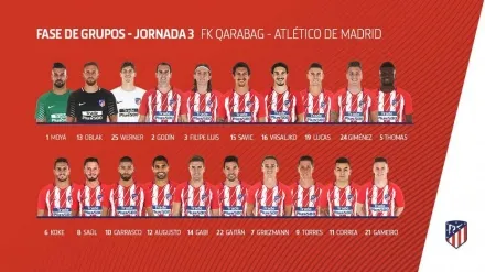 El delantero argentino y el lateral Juanfran Torres son las dos únicas ausencias, ambas por decisión técnica, de la convocatoria de 20 jugadores anunciada por el Atlético de Madrid para viajar a Azerbaiyán, donde el miércoles se enfrentarán al Qarabag en un duelo de la Liga de Campeones.