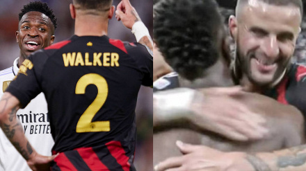 La imagen de buen rollo entre el brasileño y Kyle Walker ha sido muy comentada. Se abrazaron entre risas en un precioso gesto muy distinto al que Vinicius vive en LaLiga.