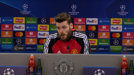 "Has visto como animan los nuestros, creo que habria que ver al revés...", aseguró De Gea al ser preguntado por la afición rojiblanca y sus cánticos en Old Trafford este martes.