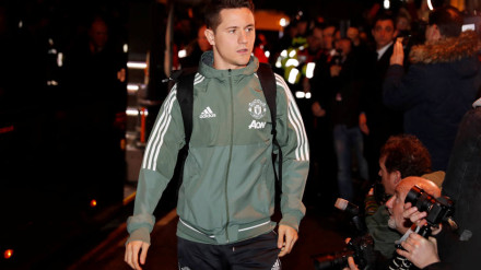 El defensa azulgrana en la previa del partido de ida de cuartos ante el Manchester United.