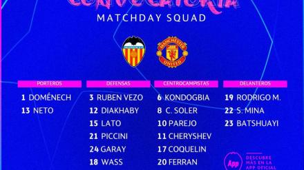 En la convocatoria no está por sanción José Luis Gayà y por lesión Jeison Murillo, Gabriel Paulista y Kevin Gameiro.