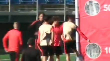 El Atlético ultimó su preparación para el partido frente al Borussia Dortmund sin Giménez, lesionado y con Juanfran al margen en el tramo final.