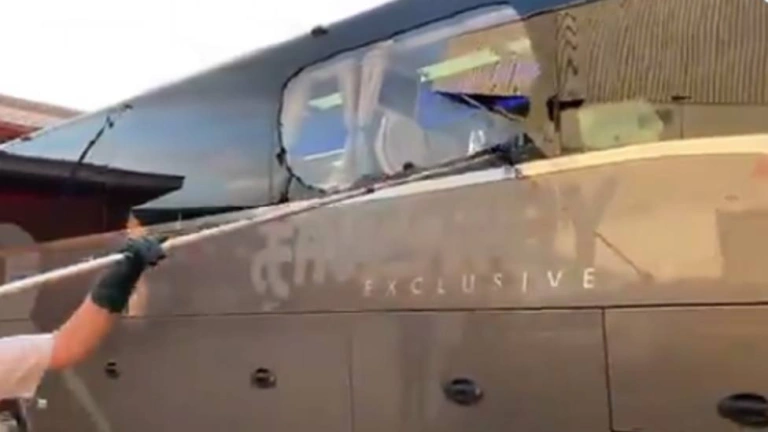 Un grupo de ultras ingleses esperaron al autobús a la entrada de Anfield con begalas y piedras, llegando a romper una de las lunas.