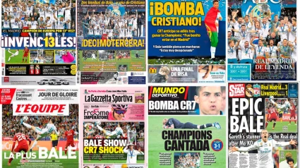 El galés con sus dos goles y el portugués con sus declaraciones tras el partido son los nombres destacados en una prensa que se rinde al tricampeón de Europa que sigue haciendo historias con sus títulos.