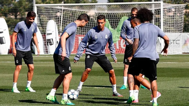 Los canteranos Álvaro Tejero y Enzo Zidane reforzaron a la primera plantilla, en un entrenamiento, en el que tras el calentamiento con la presencia de los medios y las series de carrera, según informa la web a puerta cerrada se afinó la puntería con remates a centros continuos desde los costados antes de disputar partidos en espacios reducidos.