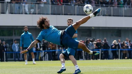 Ante todos los focos, atraído por la tercera final consecutiva de la Liga de Campeones que disputará el Real Madrid contra el Liverpool, los 24 jugadores del club blanco iniciaron el entrenamiento con una carrera ligera para calentar antes de los siguientes ejercicios.