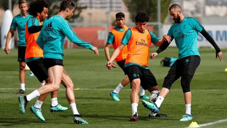 El Real Madrid trabajó con balón, según informa la web del club, con diferentes ejercicios de control y pase antes de dividirse en dos equipos para practicar la posesión y la presión. Ensayaron la puntería para mejorar los números goleadores de sus últimos partidos, con centros desde las bandas y continuos remates a puerta.