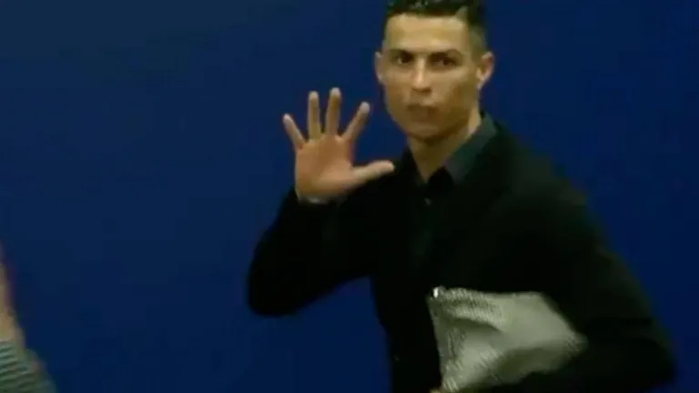 El portugués hizo el gesto del cinco y del cero con su mano cuando pasaba al lado de los periodistas.