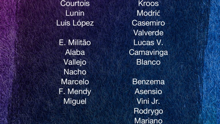 Delantero: Karim Benzema, Marco Asensio, Vinicius, Rodrygo y Mariano.