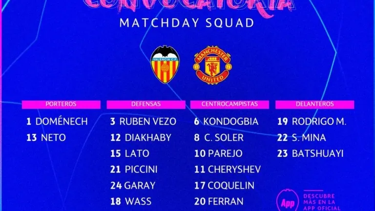 La presencia del canterano Kang In Lee es la principal novedad en la lista del Valencia para recibir al Manchester United en la última jornada de la Liga de Campeones, que está plagada de bajas.