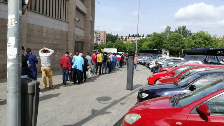 Largas colas en el Calderón para adquirir entradas para el encuentro de ida entre el Real Madrid y Atlético