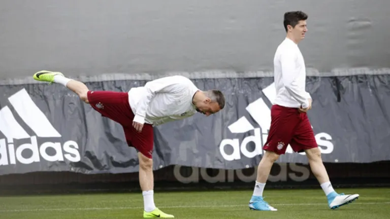 El delantero polaco participo en el entrenamiento del Bayern solo durante los primeros veinte minutos, todavía aquejado de molestias en el hombro derecho, un día antes del partido contra el Real Madrid. Lewandowski empezó el entrenamiento con normalidad pero luego, según testigos, tuvo problemas para rotar el brazo.
